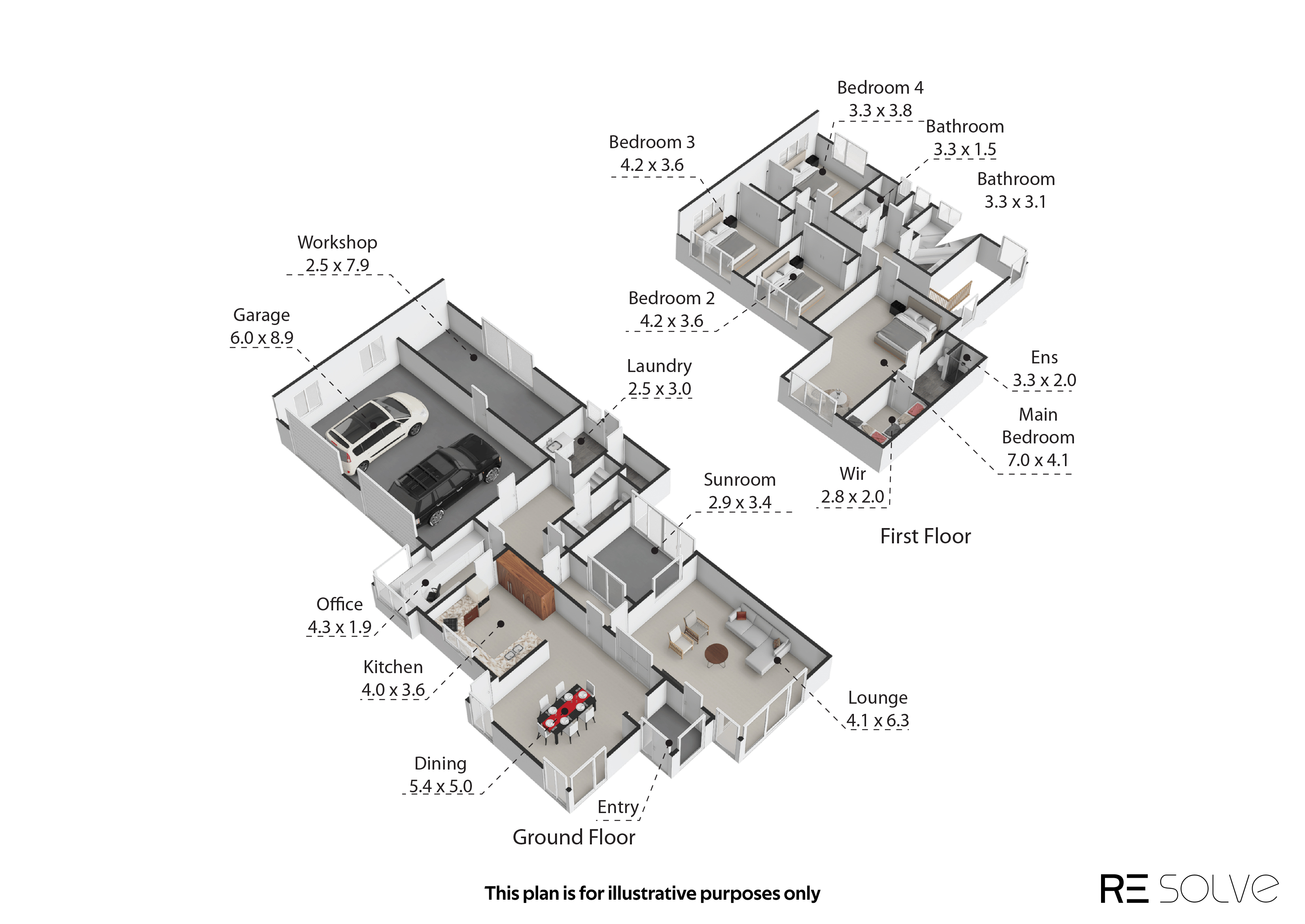 The large double garage with extra workshop space is perfect for projects, hobbies, or storing all the family gear.